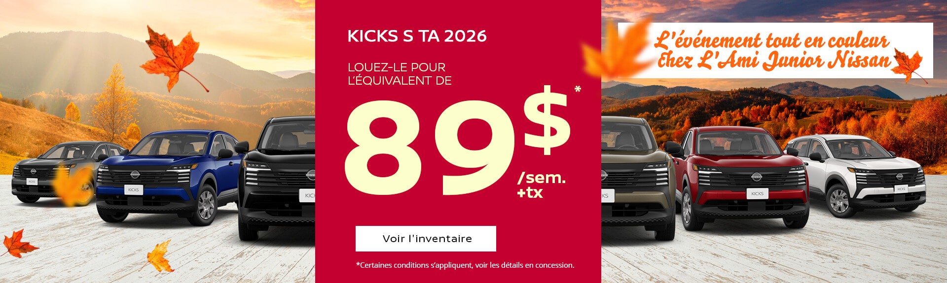 Pour ceux qui cherchent un petit format maniable avec toutes les qualités polyvalentes d’un VUS, le sous-compact Nissan Kicks 2024 est de retour avec son style et ses équipements résolument modernes. On grimpe ensuite dans la gamme avec :